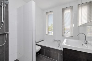 Op de eerste verdieping vind je twee goed bemeten slaapkamers. Alle kamers zijn voorzien van screens, ideaal voor warme zomerdagen. De nette badkamer is compleet uitgerust met douche, wastafel, bad en tweede toilet.