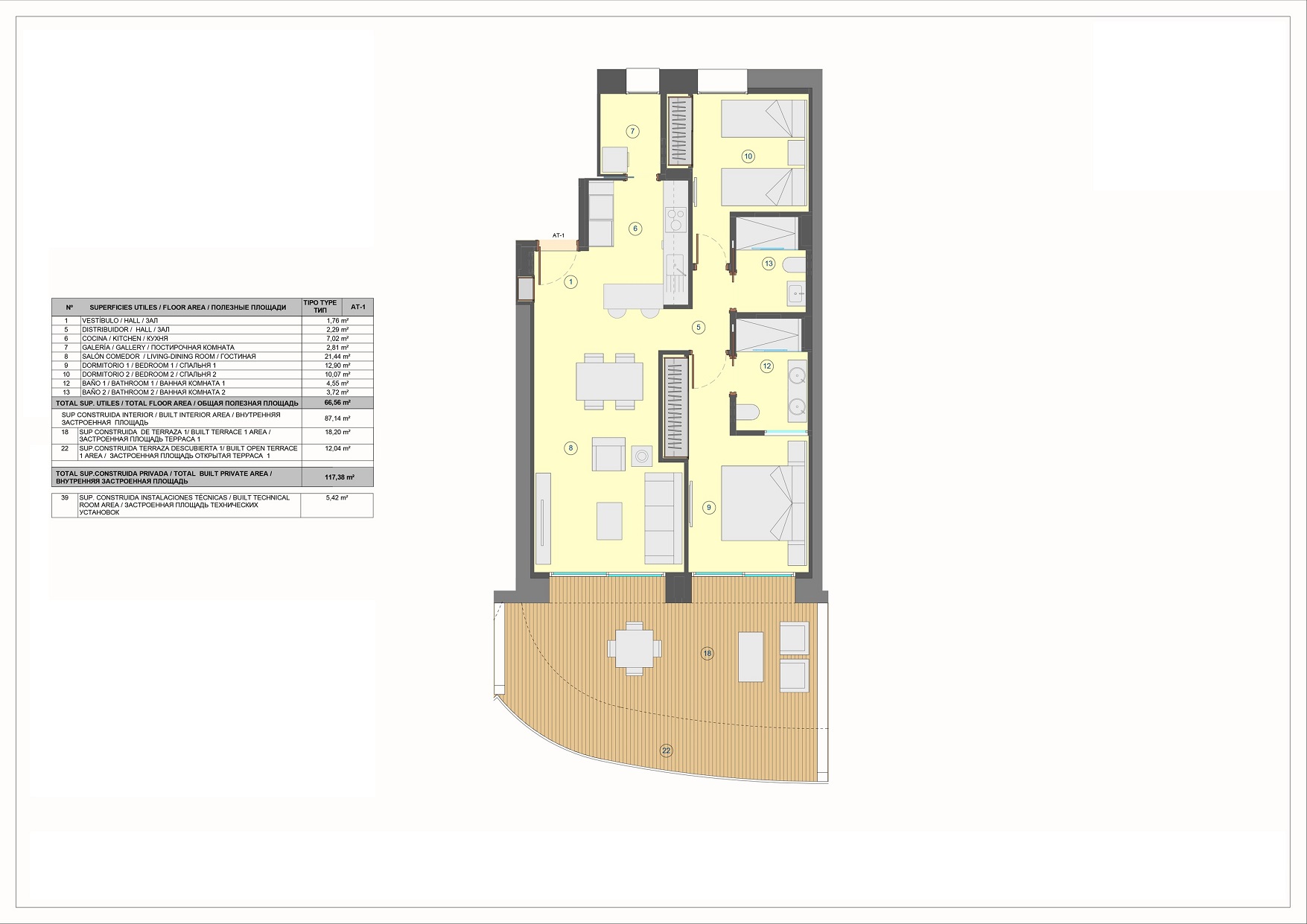This two-bedroom apartment is located in Benidorm, just a short walk to the beach, offering an ideal setting to enjoy the southern sun. With a built area of 97 m2, the living room provides a spacious area of 28.46 m2, complemented by a terrace of 30 m2, perfect for soaking in the sea views. Featuring two bathrooms, including indulgent underfloor heating, and an open plan luxury kitchen, this residence provides a comfortable environment. Enjoy the convenience of an underground parking space and optic fiber internet connection. Beyond the apartment, residents can take advantage of numerous communal features, including a gym and fitness center, a kids club, and a gaming room. Entertainment options are abundant with a cinema room, a multi-sports field, a tennis court, and a paddle tennis court. Relax by the adults pool or take advantage of the indoor and heated pools available. For those seeking relaxation, multiple features such as a Jacuzzi, Finnish and Turkish saunas, a spa, and sunbeds are included, all set within a garden landscape. The property's location provides easy access to bars, restaurants, and shops within a couple of minutes, while a short drive will take you to a golf resort.