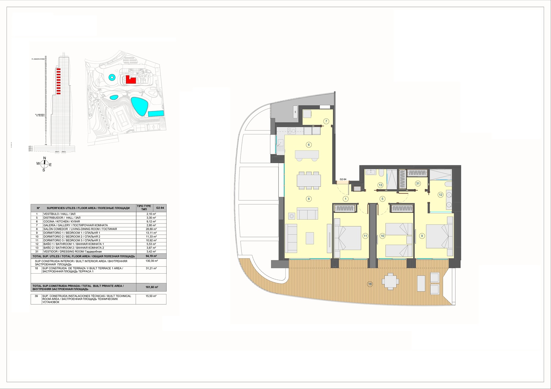 This exquisitely designed apartment in Benidorm offers contemporary living in a sought-after area, with magnificent sea views from the generous living room, which covers an area of 38 m2. With a built area of 125 m2, including a charming terrace of 31 m2, it provides abundant space for relaxation and entertaining. The luxury open plan kitchen complements the apartment's modern style, offering both functionality and aesthetic appeal. Featuring three bedrooms and two bathrooms, including underfloor heating in the bathrooms, this apartment ensures comfort in every season. With its south-facing orientation, residents can enjoy natural light and warmth throughout the day. Situated within walking distance of the beach, the property is also conveniently close to various amenities, including shops, dining, a golf resort, and even a medical center. Furthermore, it includes an underground parking space and an optic fiber internet connection for added convenience. Communal facilities elevate this residence with an array of options such as an adults pool, indoor pool, gym, cinema room, kids club, and spa with a Finish and Turkish sauna. For fitness enthusiasts, there are tennis and paddle tennis courts, a multi-sports field, and a gaming room. The communal rooftop terrace with sunbeds offers a perfect spot for relaxation.