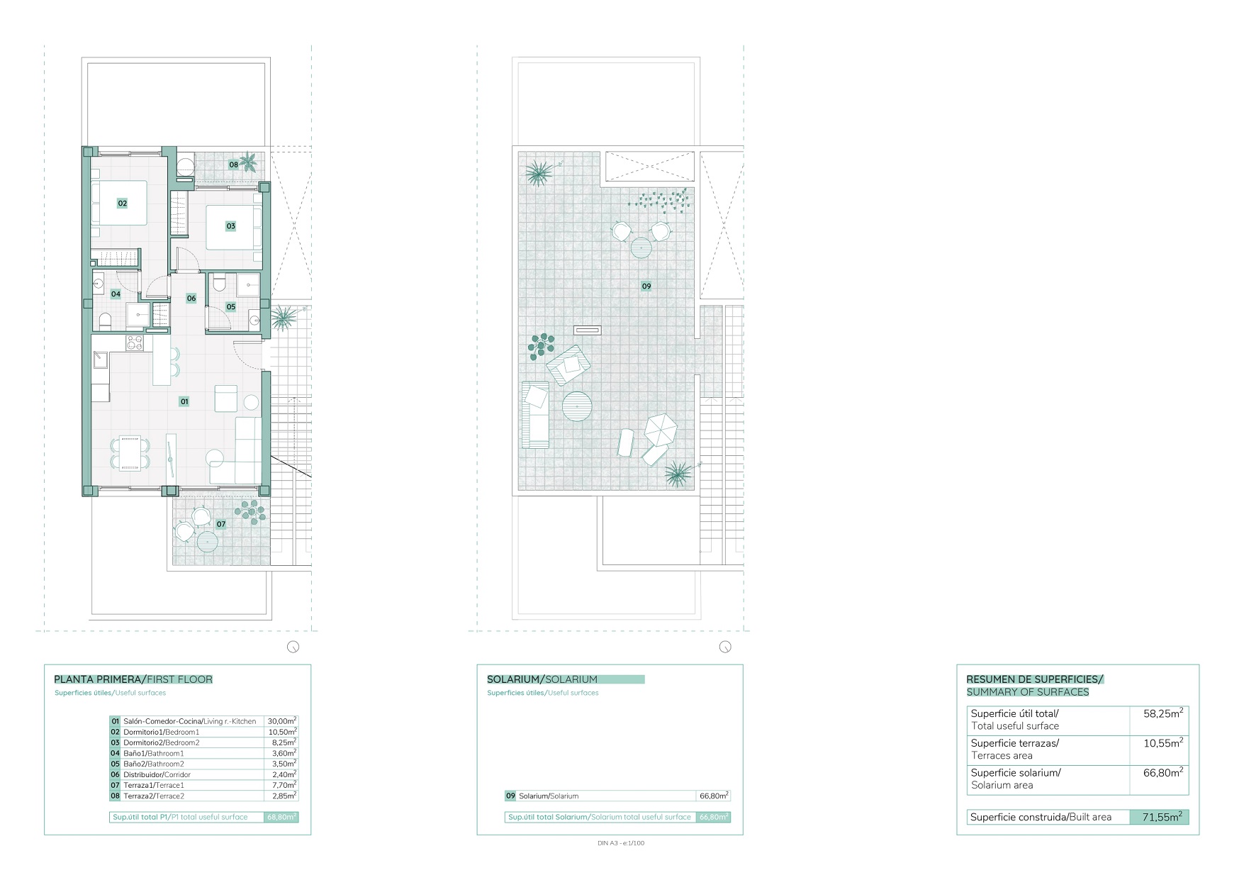 This penthouse in Torrevieja is currently under construction. The property offers a spacious living experience with a total built area of 146 m2. The internal space boasts 2 bedrooms, 2 bathrooms, a generously sized living room of 29 m2, and a house area of 69 m2. A key highlight is the outdoor space, including an 11 m2 terrace and an impressive 66 m2 rooftop terrace perfect for hosting or relaxing while enjoying the garden and pool views. The property's placement provides simple access to local restaurants and shops. Modern amenities include an optic fiber internet connection, some included appliances, and heating via air conditioning, with pre-installation for full air conditioning already in place. Residents can enjoy a communal infinity swimming pool, garden, and Jacuzzi, ensuring plenty of opportunities for relaxation and leisure.