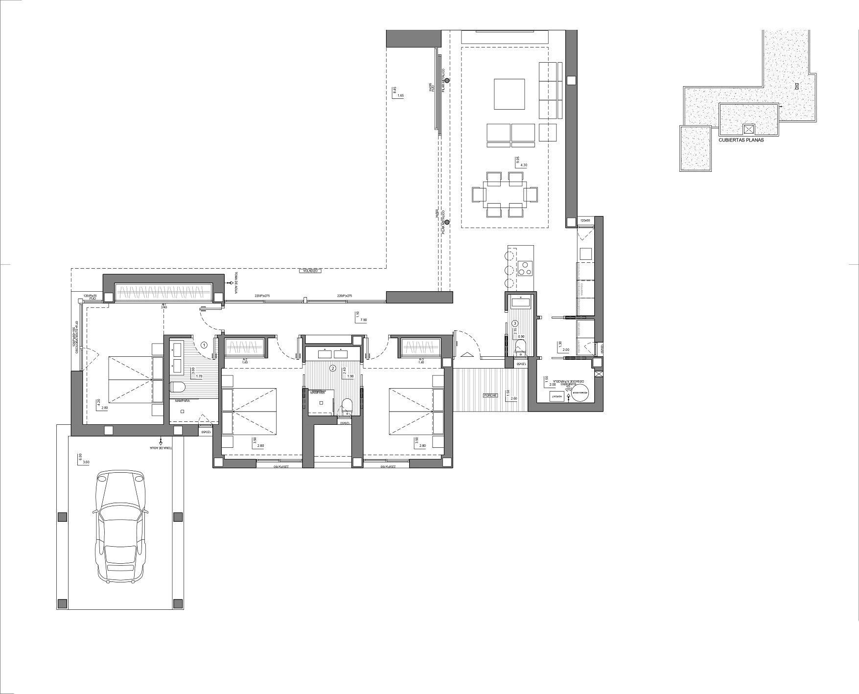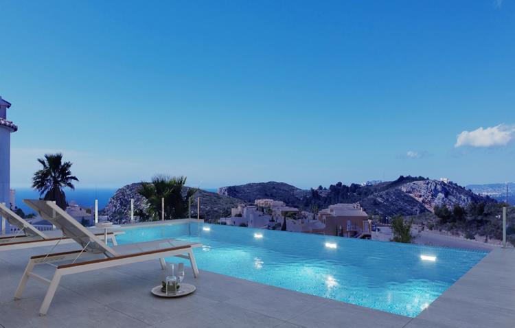This new villa is currently under construction in the northern region of Costa Blanca, in Cumbre del Sol. The property boasts a private plot of 813m2 with a built area of 417m2. The house itself has a generous area of 142m2, featuring a spacious living room of 41m2. The villa also includes a 25m2 terrace, perfect for enjoying the South-East orientation with views of the sea and mountains. The property comprises 3 bedrooms, 3 bathrooms, and an additional guest toilet. The villa also features a private infinity swimming pool and a garden. The kitchen is of a luxury type with some appliances included. The property is equipped with air conditioning and underfloor heating for comfort. Restaurants and shops are within walking distance, adding to the convenience of this location.