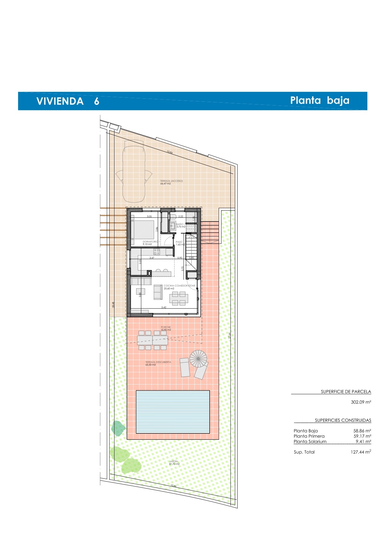 This new villa is under construction in Pilar de la Horadada. The property, a golf property, boasts a private swimming pool and a garden. The villa has a plot size of 302 m2, a built area of 181 m2, and a house area of 127 m2. The living room area is a spacious 33 m2. The villa also features a terrace of 21 m2 and a rooftop terrace of 54 m2. The property has three bedrooms and three bathrooms. Some appliances are included, and the villa is equipped with electrical heating and air conditioning. The view from the property is of the golf course.