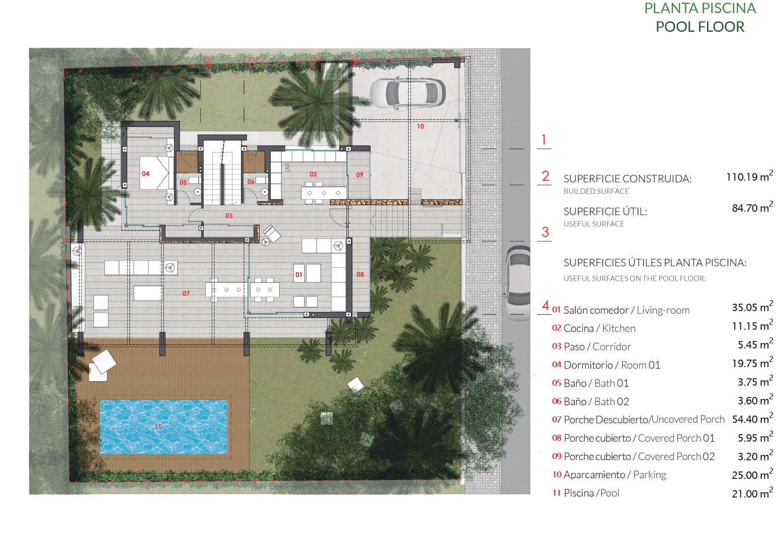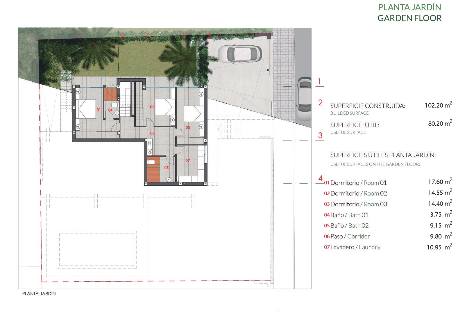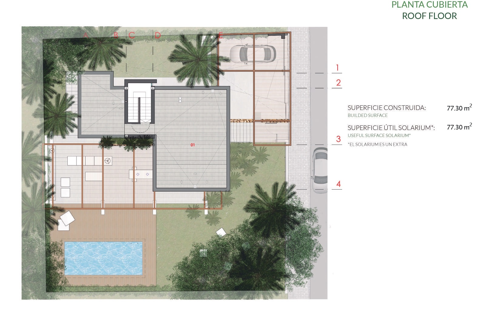 Orihuela Costa walking distance from the beach, shops and restaurants! Villa with a pool (3x7)m2 and garden on a private 500m2 plot. This villa has 4 bedrooms and 4 bathrooms, 46m2 livingroom and a modern kitchen. After having spent your day on the beach, at home there is also a very nice roof top terrace (77m2) to enjoy the long evenings in summer and mild climate with sunny days in winter.
