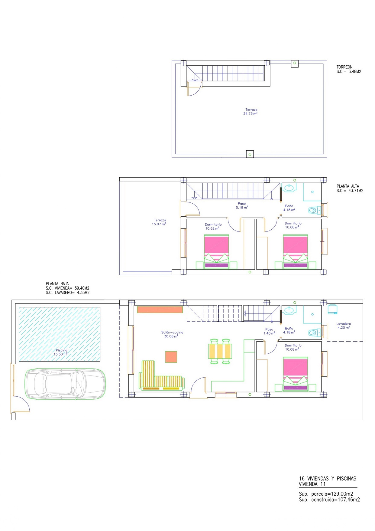 The villa is under construction in the charming town of San Pedro del Pinatar. With a generous built area of 143 m2 and a comfortable living room spanning 30 m2, this property is designed to offer ample space for relaxation and entertainment. There are three inviting bedrooms and two bathrooms, perfect for family living or hosting guests. The villa boasts a private swimming pool, ideal for enjoying the warm Spanish climate. Outdoor lovers will appreciate the 16 m2 terrace and the spacious 35 m2 rooftop terrace, offering excellent spots for sunbathing or outdoor dining. The plot size of 129 m2 includes a garden, adding a touch of nature to the property. Located within walking distance to local restaurants and shops, convenience is always at hand. The house is close to a golf resort and just 8 minutes from the beach, providing plenty of recreational options. With optic fiber internet, pre-installed air conditioning, some appliances included, and air conditioning heating, modern amenities are catered for. The vibrant lifestyle of San Pedro del Pinatar makes it an ideal setting for everyday living or as a holiday retreat.