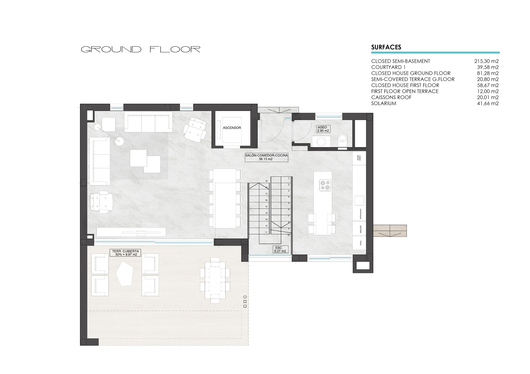 - Rooftop Terrace Area: 42m2