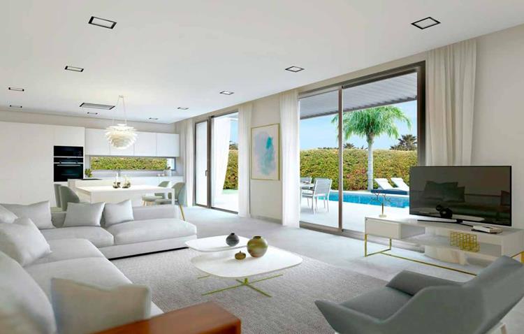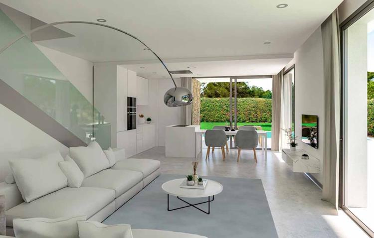 This villa is under construction in Finestrat, offering a blend of modern design and functionality. The property spans a plot of 545 m2, with the villa itself occupying 127 m2. Inside, the living room covers 37 m2, providing a spacious area for relaxation and entertainment. The villa has three bedrooms and three bathrooms, making it ideal for families or hosting guests. An open plan luxury kitchen is complemented by some included appliances, making meal preparation a joy. Air conditioning and heating ensure comfort in all seasons. Outdoor features include a private swimming pool and a garden area of 149 m2, which provides views of both the garden and pool, offering a serene setting. A considerable terrace of 86 m2 extends the living space outdoors, perfect for enjoying the climate of southern Costa Blanca. The vibrant surroundings of Finestrat, with its close proximity to various amenities, add to this property's appeal.