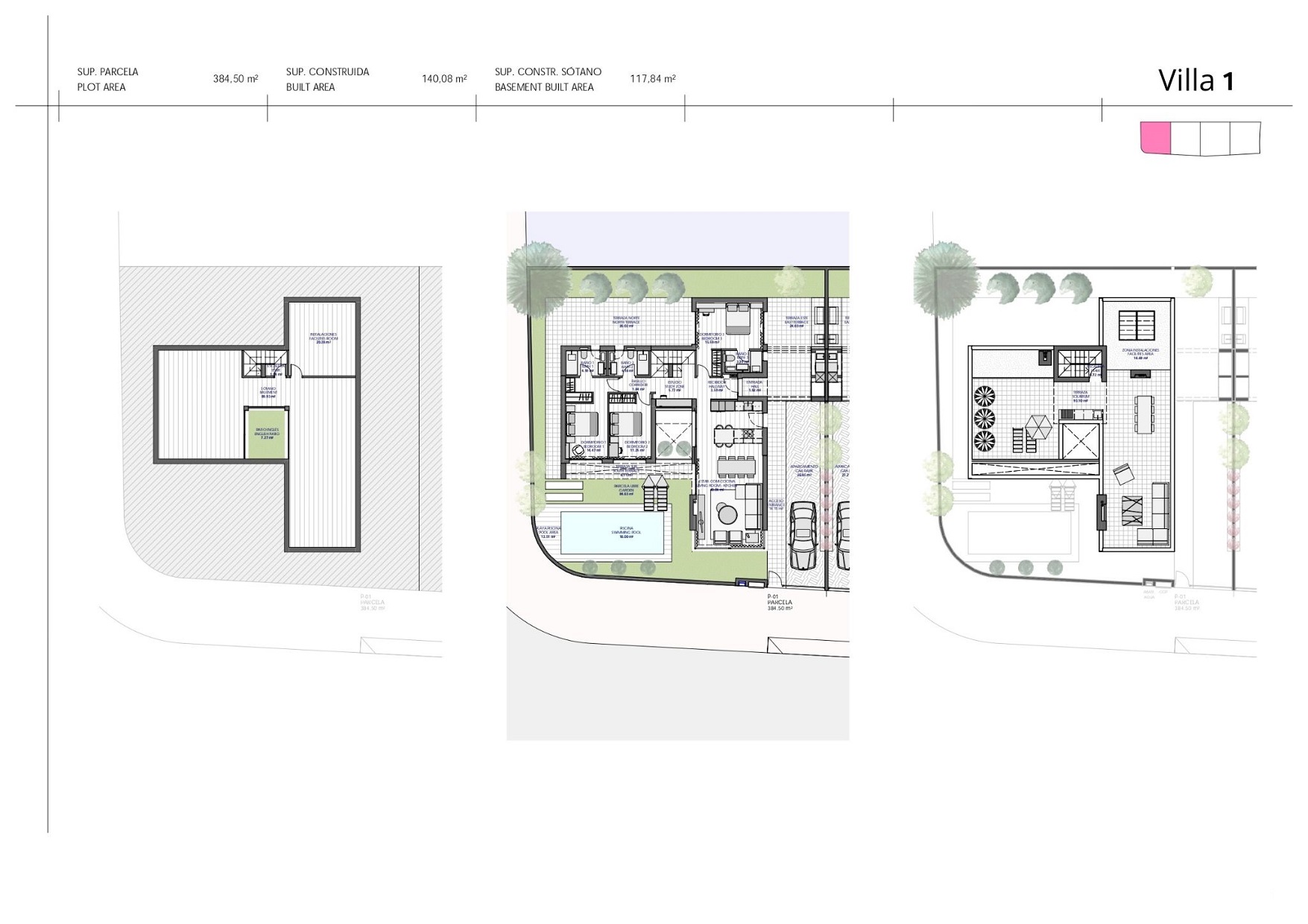 This villa in Santa Rosalía is currently under construction, offering an inviting space with a focus on comfort and convenience. Spanning a house area of 140 m2 with a spacious living room area of 49 m2, the villa is designed for modern living. Enjoy the outdoor ambiance with a terrace area of 40 m2 and a private swimming pool measuring 3x7 meters, perfect for relaxation and entertainment. The villa includes three bedrooms and three bathrooms, providing ample space for family and guests. Additional features include a basement with an area of 144 m2 and a spacious rooftop terrace of 93 m2, adding to the allure of the property. Kitchen enthusiasts will appreciate the luxury open-plan kitchen equipped with some appliances and pre-installed air conditioning. The villa also includes a closed garage for parking and storage. Situated in Santa Rosalía, this property is within walking distance of restaurants and shops, offering convenience and ease of access. Communal amenities include an adults' pool for extra leisure options.