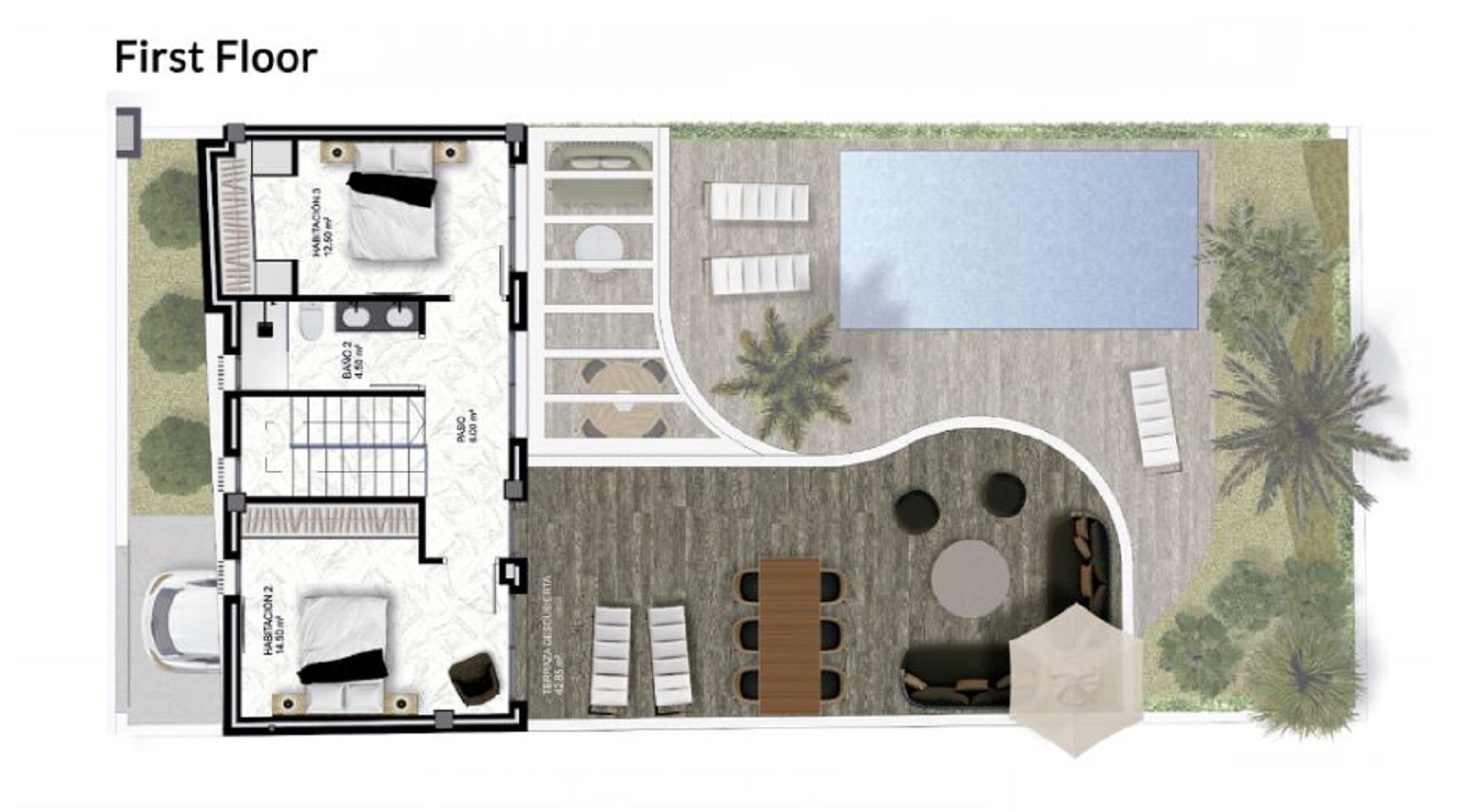 This under-construction villa in Rojales offers a comfortable living experience with its private plot of 210m2. The house has a built area of 149m2 and encompasses a spacious living room of 36m2. The villa also includes a generous 41m2 terrace, making it an ideal space for relaxation and leisure. The property has three bedrooms and three bathrooms, providing ample space for a family or guests. The luxury kitchen comes equipped with all necessary appliances. The property benefits from a south-oriented garden, and a private swimming pool measuring 3x6m, perfect for enjoying the sunny Spanish climate. Within walking distance, you'll find various amenities such as restaurants, shops, and a medical center, while the beach is just a 15-minute drive away. The villa is also close to a golf resort, adding to its appeal for golf enthusiasts. It features a pre-installed air conditioning system and air conditioning heating, ensuring year-round comfort. Optic fiber internet is available, ensuring a reliable connection. This villa offers a great blend of location, comfort, and modern amenities.