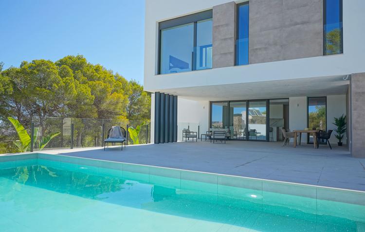 This under-construction villa in Moraira offers a blend of contemporary design and luxurious living. With a generous built area of 560 m2 on a private plot of 800 m2, the property provides ample space for relaxation and entertainment. The villa features four bedrooms and four bathrooms, ensuring comfort for family and guests. The open-plan luxury kitchen is partially equipped with appliances, and pre-installed air conditioning offers added convenience. Residents can enjoy a private swimming pool and beautifully landscaped garden, providing a serene setting for outdoor activities. The panoramic landscape views enhance the sense of tranquility. The villa is conveniently located within walking distance to restaurants and shops, and the beach is just a 5-minute drive away. Optic fiber internet connection ensures seamless connectivity. Parking and storage needs are met with a closed garage.