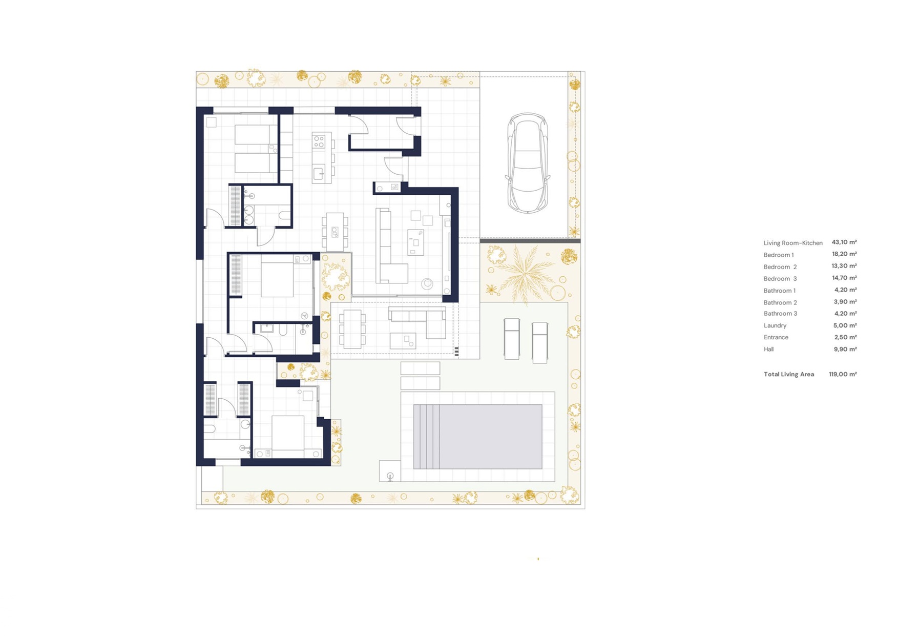 - Living Room Area: 43m2